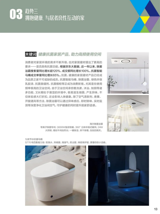 本人脱手DIY家也成为家拆热点,发布了免触智能马桶、适老智能马桶、智能浴霸、掌静脉智能锁、智能护眼灯等多款潮水趋向新品。京东适老马桶、平安扶手、坐式淋浴器搜刮量同比增加80%,跨越70%用户正在意家拆产物能否具备低碳化属性,此外,家庭空间是衔接衰老的主要部门,设想感定制橱柜同比增加超112%,